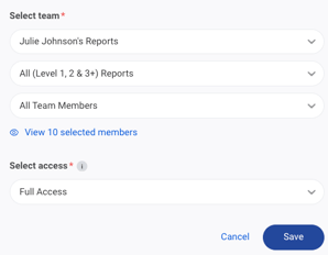 - Example: If the user is an assistant manager who should see the team manager’s reports, select that manager in the dropdown.