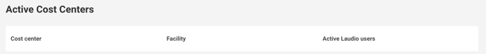 Cost Centers in Laudio represent the organizational units or departments pulled directly from your HR reporting structure. Each cost center is linked to a facility, leader, and active Laudio user who manages that area.