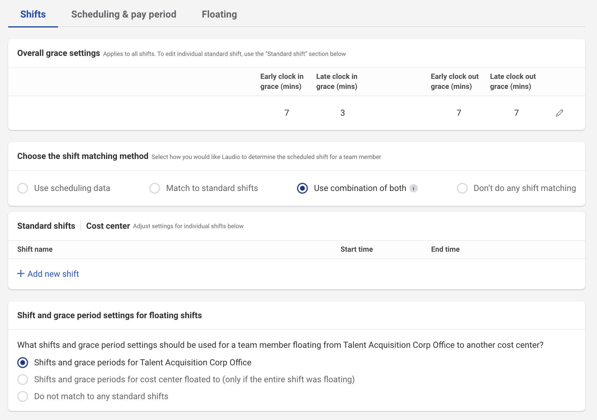 Shift Matching Method: Select how Laudio identifies which shift a team member is scheduled for.