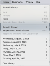 In the top menu, click History > Clear History.