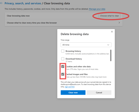 Clear Cache and Cookies in Microsoft Edge