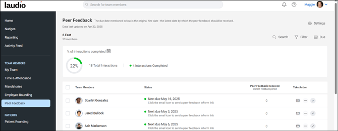 - A way for managers to track who is due for peer feedback and can be configured to match your organizational policy.
